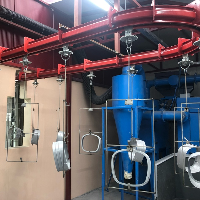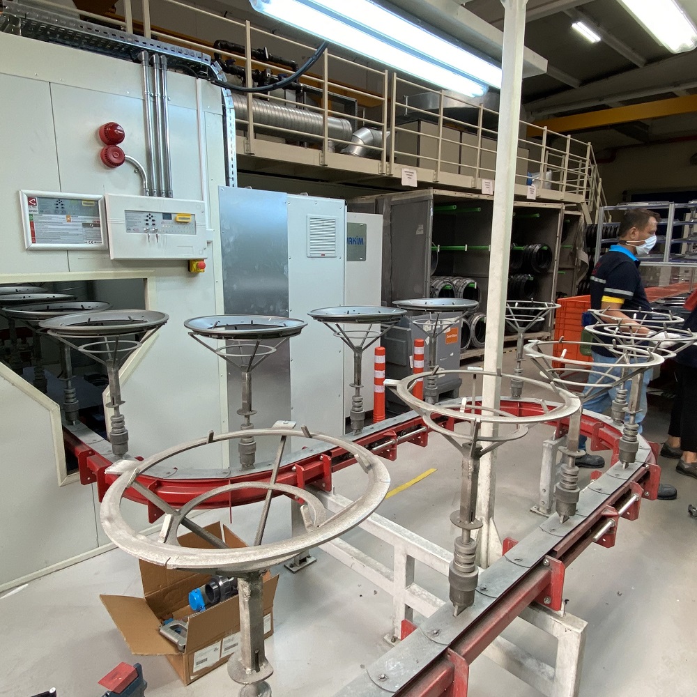 Evakim, boyama hattının kapasitesine, parça mimarisine ve boyama sürecine bağlı olarak çeşitli tiplerde konveyör sistemlerini tasarımlarına entegre etmektedir.