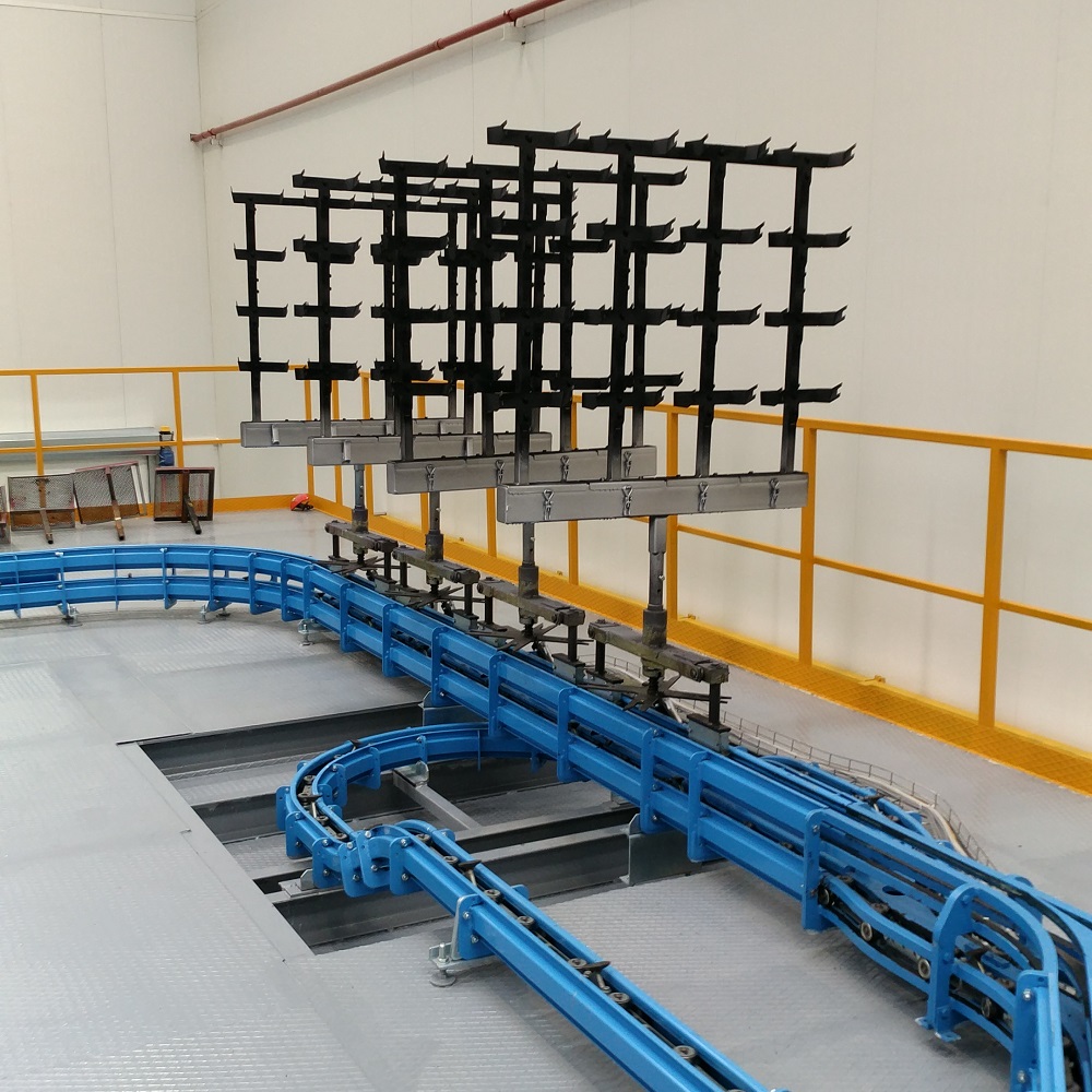 Çift raylı mimari; otomasyon sistemi sayesinde sürekli çalışan zincir sisteminin taşıdığı jigleri bağımsız olarak kontrol etme imkanı.